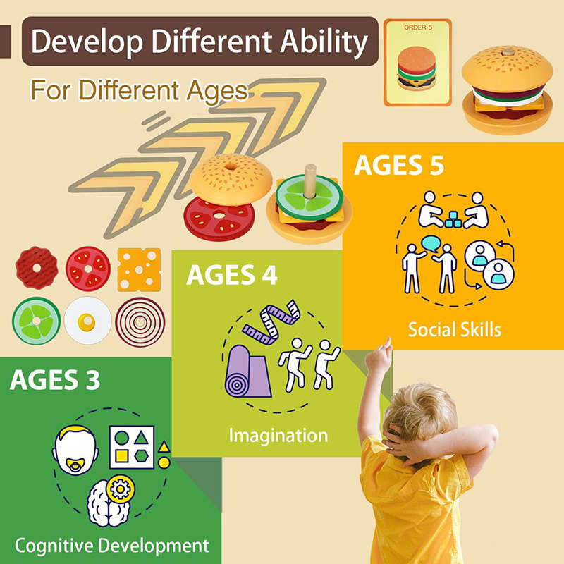 HOLALA Burger & Sandwich Stacking Toy Fine Motor Skills Builder for Kids